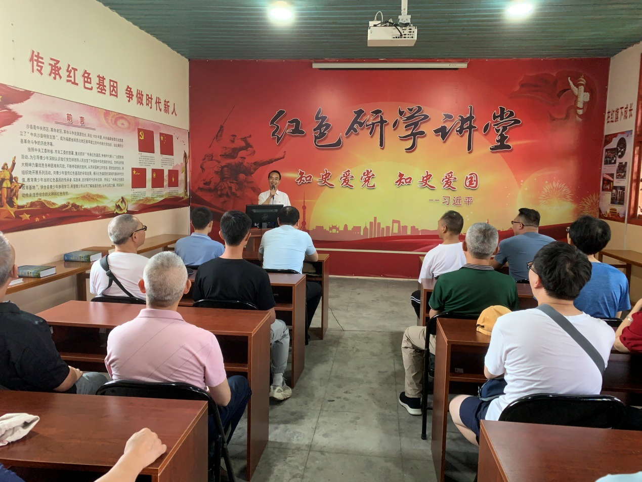 党员们实地参观了中共沙县特别支部旧址文昌宫,在听完讲解员介绍这个历经数百年历史的文昌宫后,党员们备受感动。这座看似不起眼的庙宇,竟然见证了一代代学子的成长,也见证了成立于夏茂镇的中共沙县特别支部点燃革命的火种,星火燎原。党员们深刻感受革命者为新中国的建立英勇献身的精神,以此缅怀革命先辈的斗争精神和光荣传统。随后,在红色研学讲堂里,党委书记、校长罗世钦,党委委员、副校长谢阳军,党委委员、副校长江文林还分别向大家生动讲述了夏茂的红色故事。