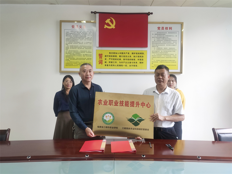 2021年10月18日,三明农校与三明国家农业科技园区管委会共建的“农业职业技能提升中心”,在三明国家农业科技园区管委会挂牌成立。