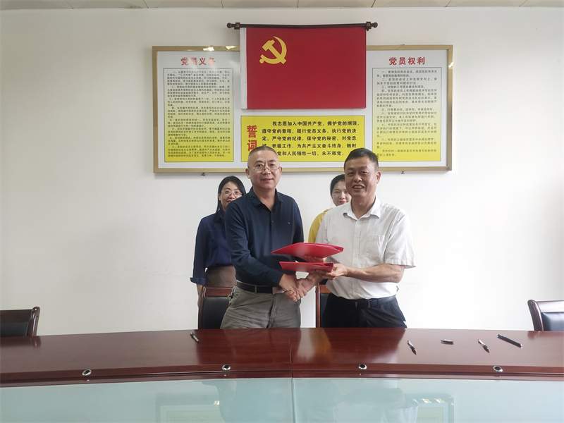 (三明农校谢阳军副校长与园区管委会高明正主任签约、挂牌)