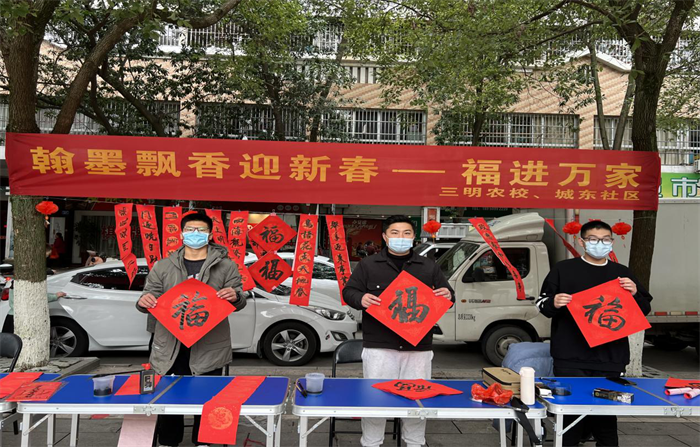 三明农校进社区开展“翰墨飘香迎新春--福进万家”活动