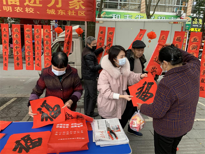 春节是全体中国人合力打造的、全球最具影响力的节日。三明农校师生奉献自己一份力量,送福进万家,为节添彩,其乐融融!
