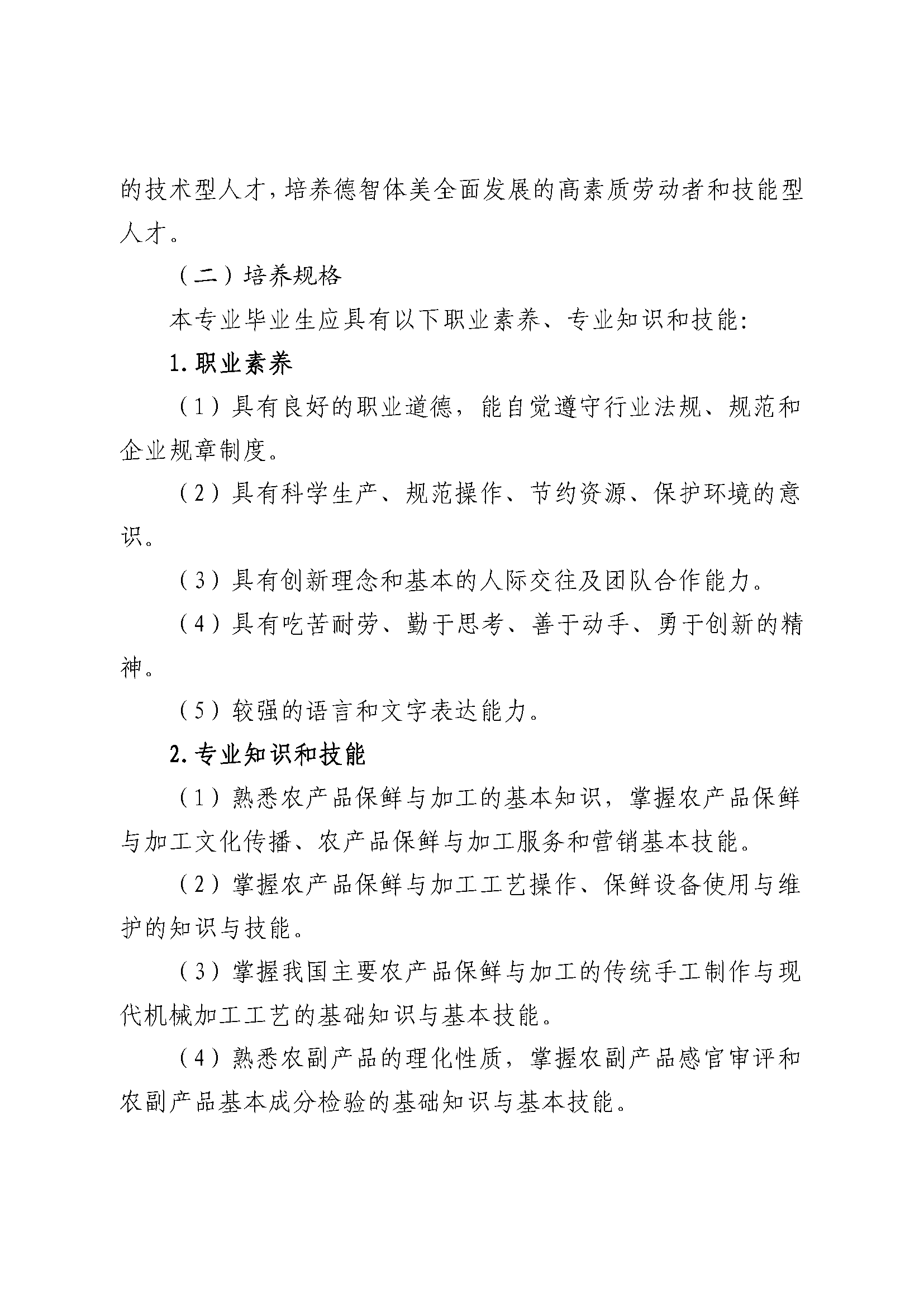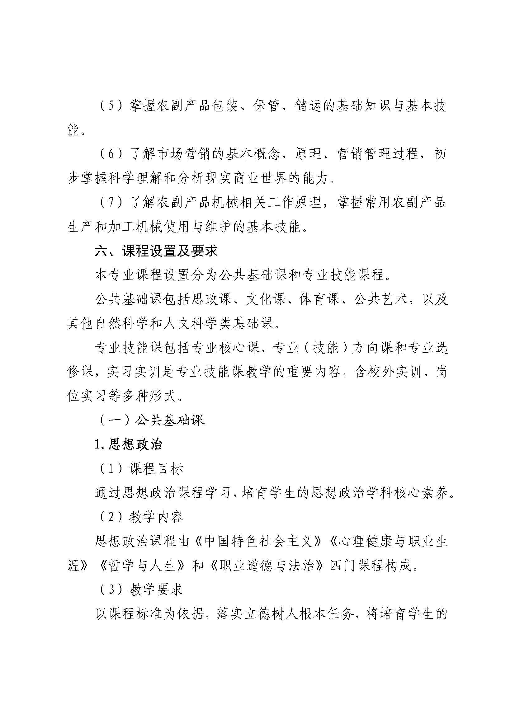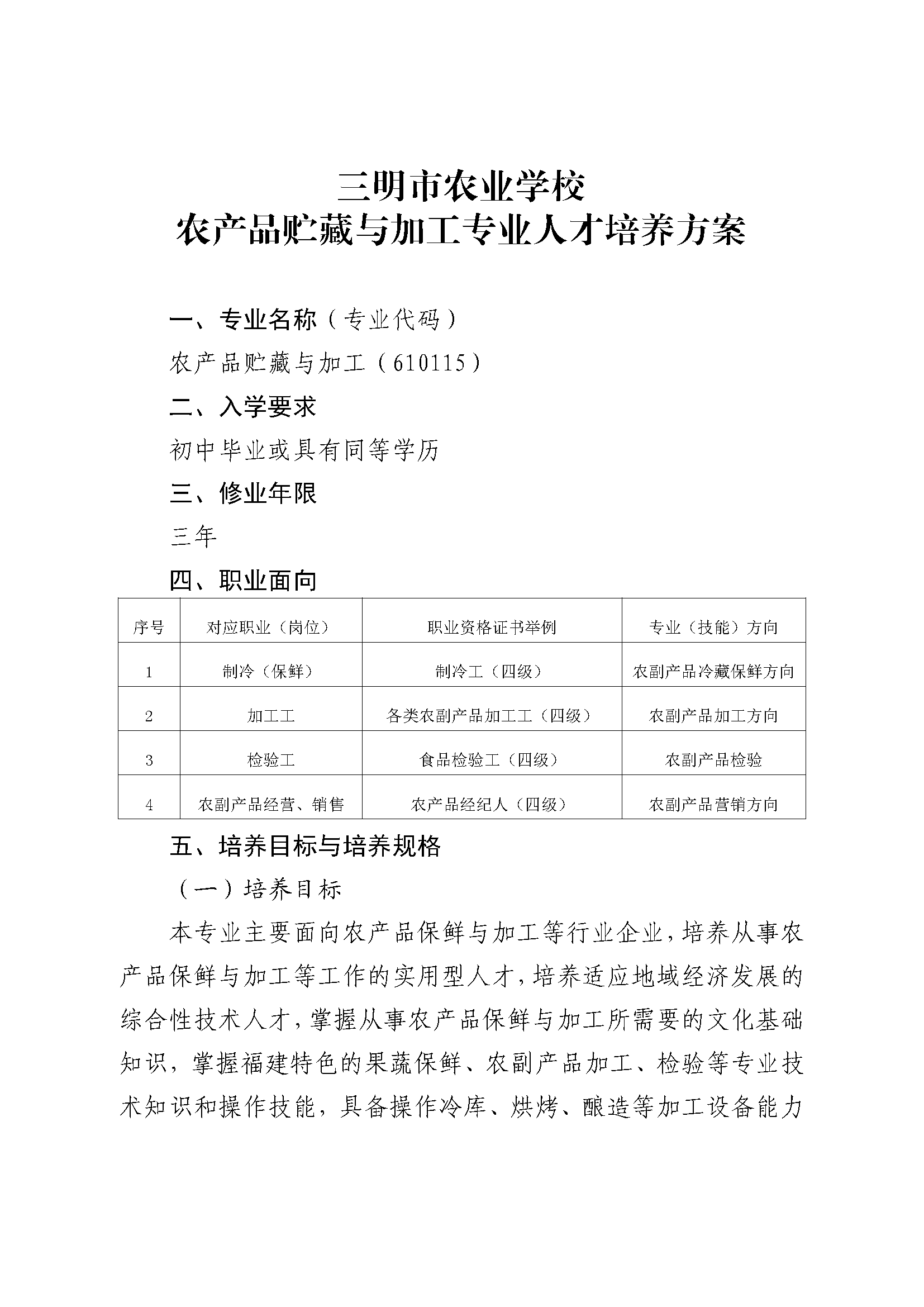 三明市农业学校农产品贮藏与加工专业人才培养方案(2023)
