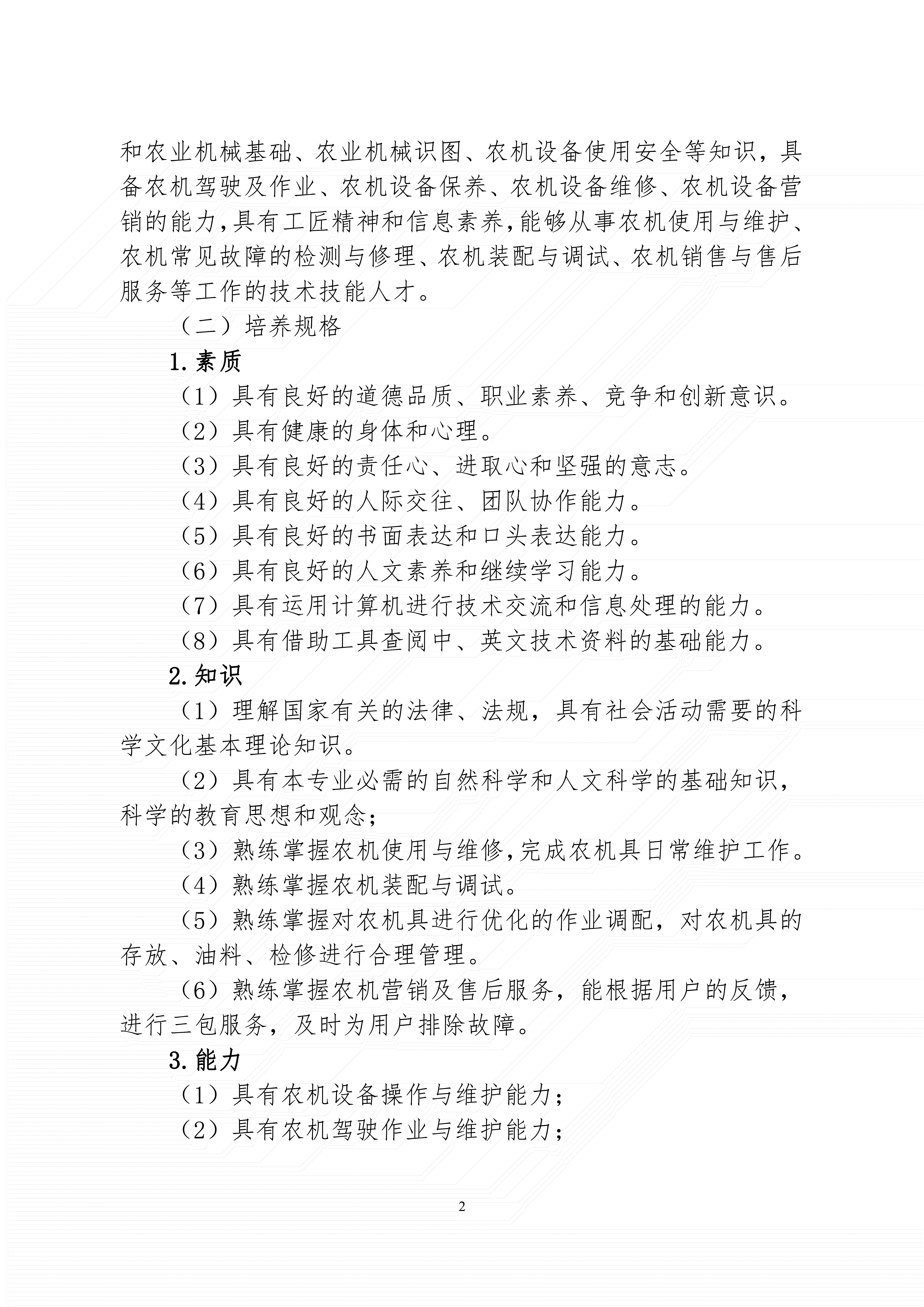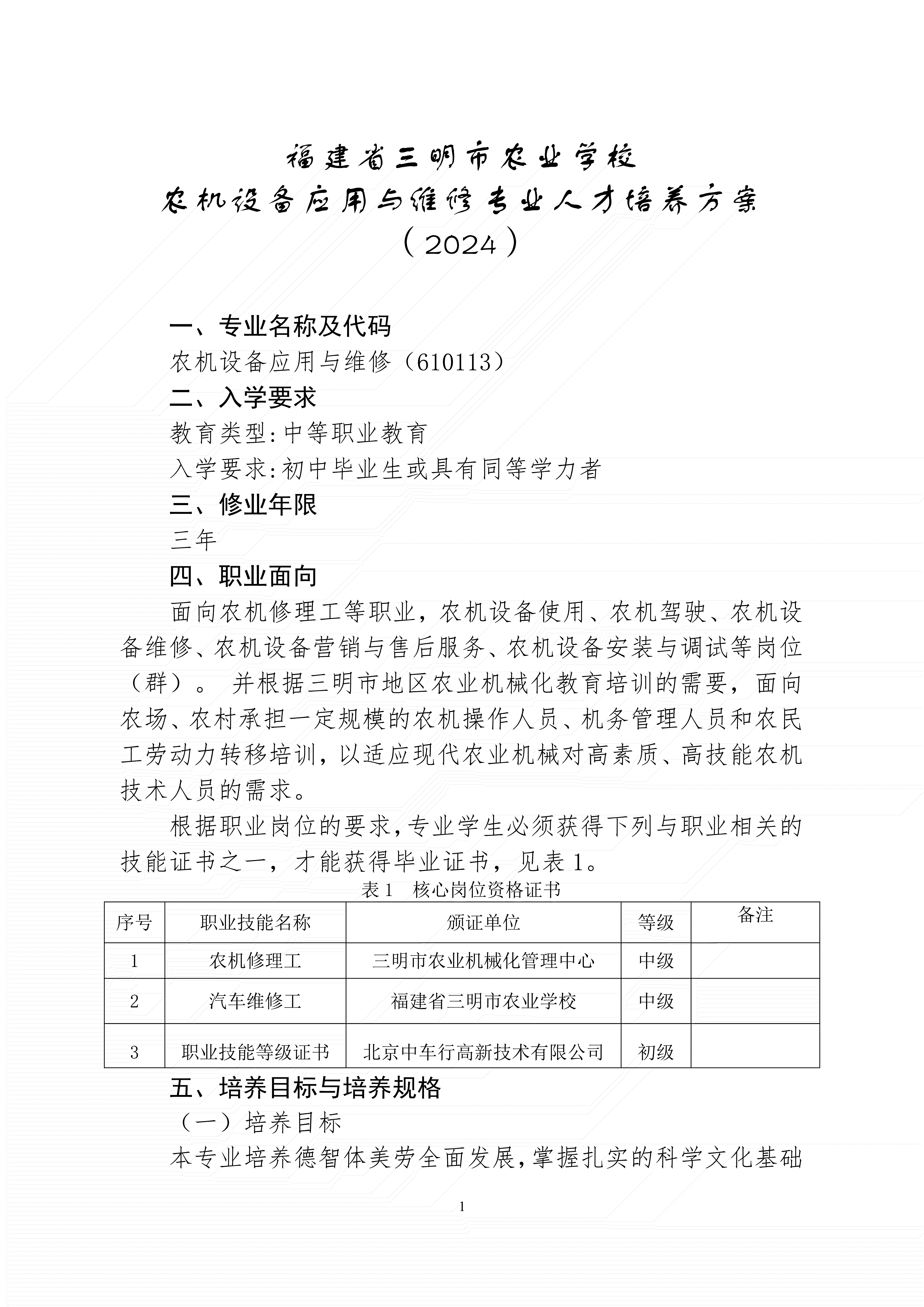 三明市农业学校农业设备应用与维修专业人才培养方案(2024)