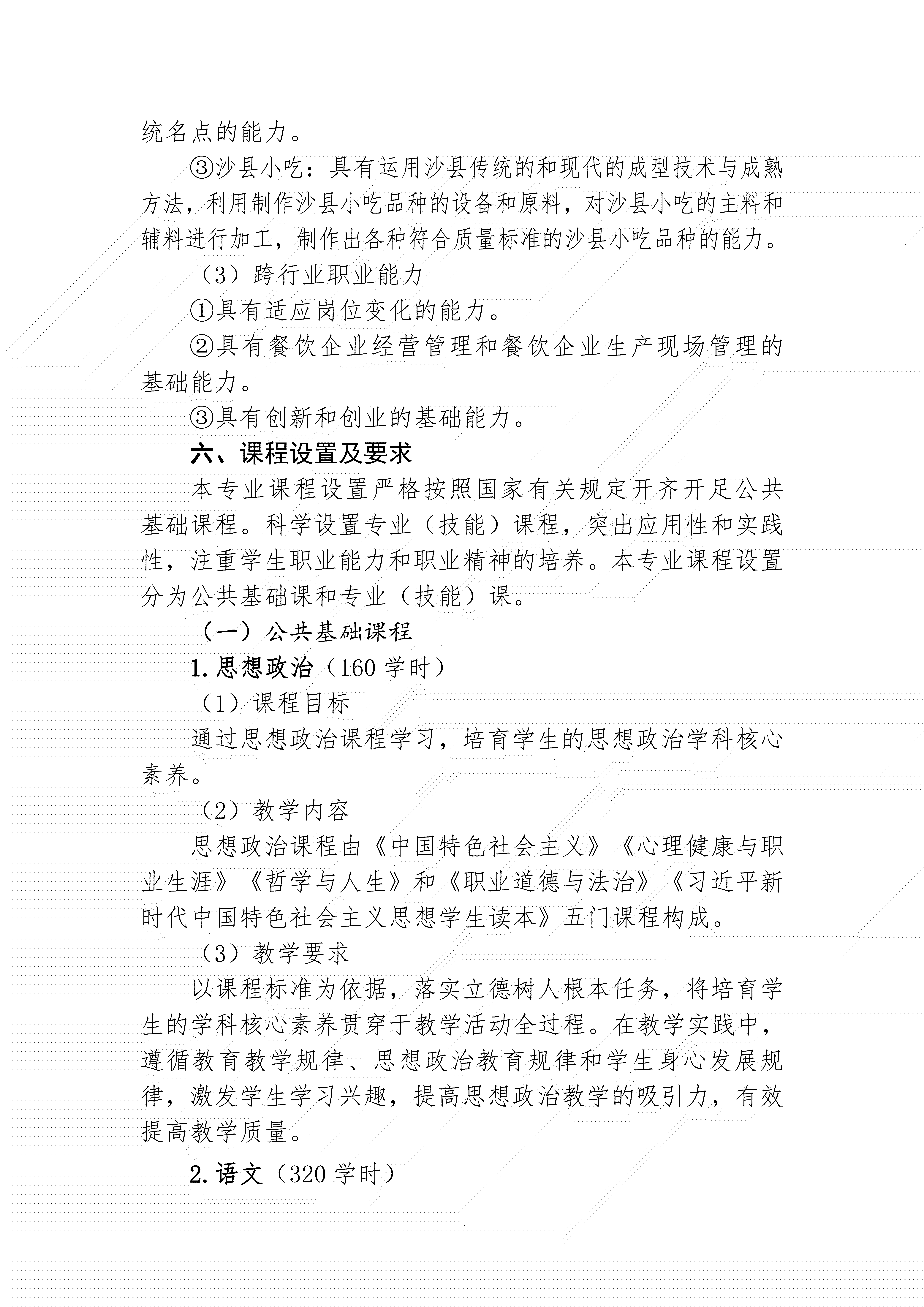 三明市农业学校中餐烹饪专业人才培养方案(2024)