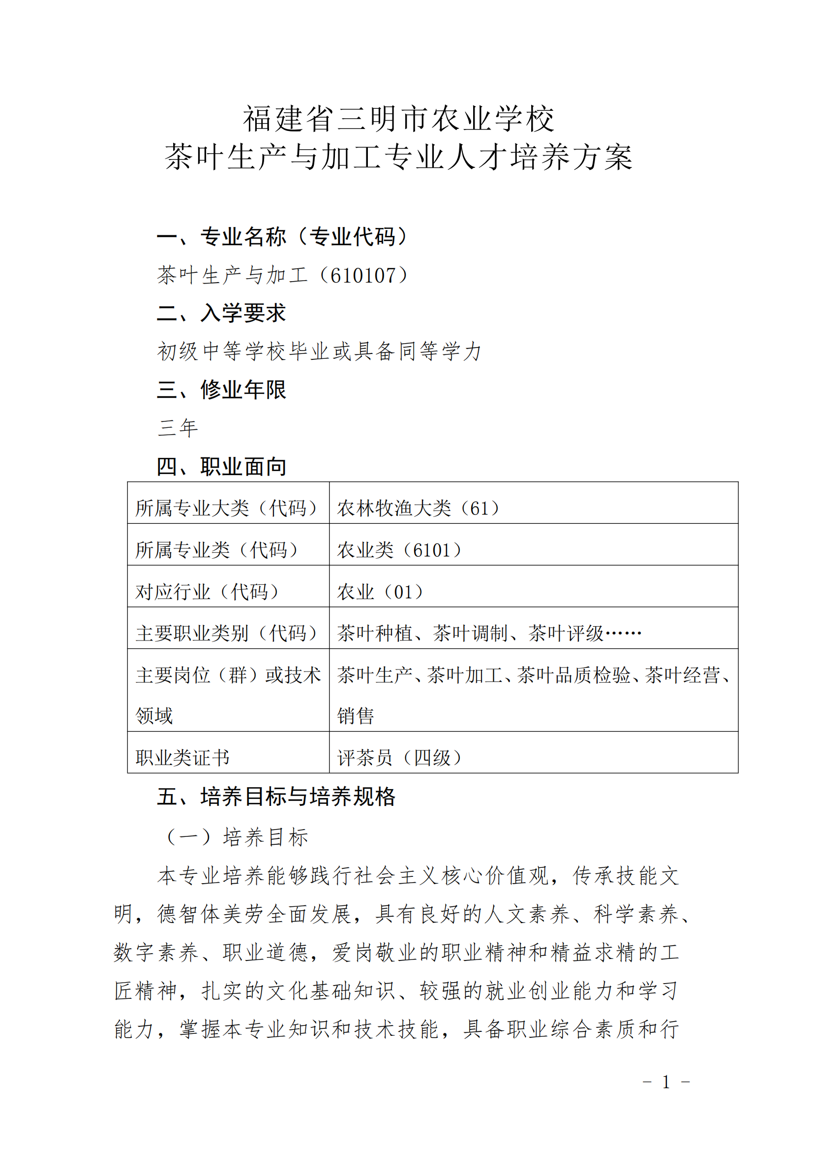 华体会体育官方网站茶叶生产与加工专业人才培养方案
