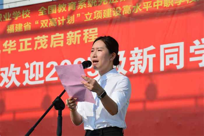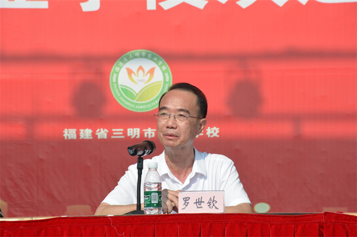 学校党委委员、校长陈文优代表学校致辞。他以“在历史的坐标上,接好时代的接力棒”为主题,从“立鸿鹄之志”“持工匠之心”“修身心之德”三个维度,为新生指明成长方向。他强调,三明市农业学校作为一所办学底蕴深厚的学校,始终坚守“为党育人、为国育才”的初心使命;恰逢纪念中国人民抗日战争暨世界反法西斯战争胜利80周年与学校庆祝建校60周年,站在这一特殊历史节点,新时代的青年学子更肩负着承续历史、开创未来的时代重任。他期望新生牢记校训,在三明农校这片沃土上锤炼本领、涵养品格,以担当精神扛起属于这一代人的责任,实现全面成长。